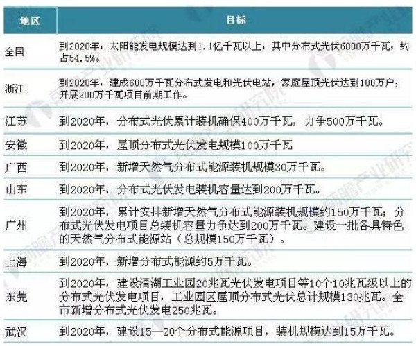 随后全国各地纷纷出台能源相关的政策,在发展分布式能源方面也提出了各自的目标,例如:广州到2020年,要新增天然气分布式能源装机规模约150万千瓦;分布式光伏发电项目总装机容量力争达到200万千瓦。